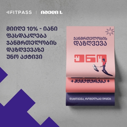 მიიღე 10% იანი ფასდაკლება იმედი L-ის ჯანმრთელობის დაზღვევაზე უნო აქტივზე. ფასდაკლების მისაღებად, აუცილებელია, Fitpass აპლიკაციაში განთავსებული პრომოკოდი გაიაქტიურო იმედი L-ის ვებ გვერდზე